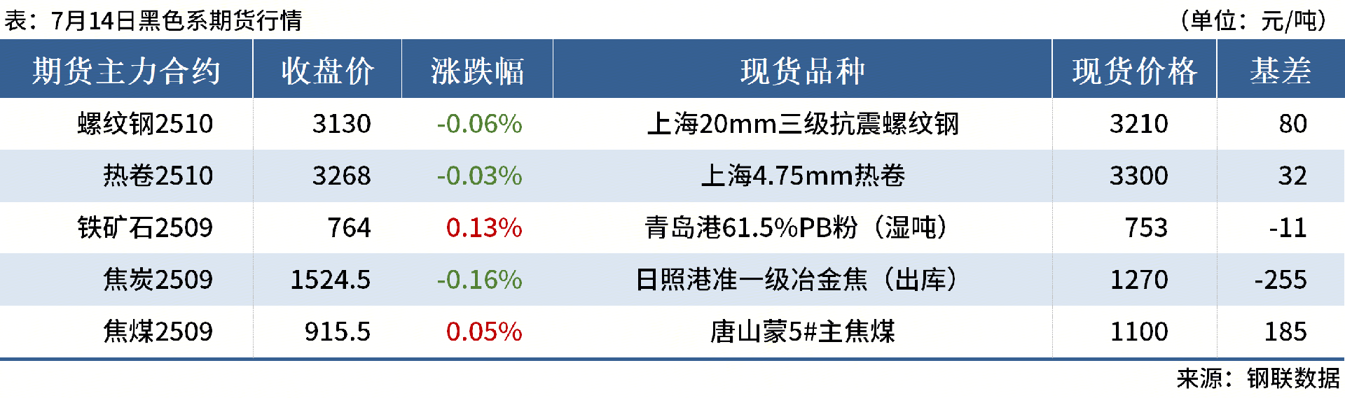 ◎7月14日,全國主港鐵礦石成交95.50萬噸,環(huán)比增20.4%;237家主流貿(mào)易商建筑鋼材成交10.58萬噸,環(huán)比增5%。