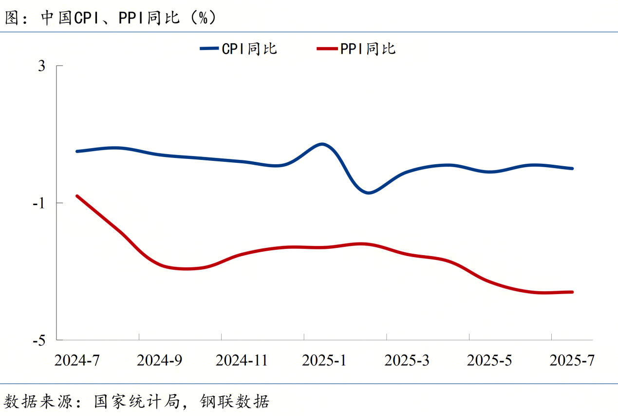 ◎ 國家統(tǒng)計局:7月份,擴(kuò)內(nèi)需政策效應(yīng)持續(xù)顯現(xiàn),CPI環(huán)比由上月下降0.1%轉(zhuǎn)為上漲0.4%,同比持平;受季節(jié)性因素疊加國際貿(mào)易環(huán)境不確定性影響,PPI環(huán)比下降0.2%,環(huán)比降幅比上月收窄0.2個百分點,同比下降3.6%。