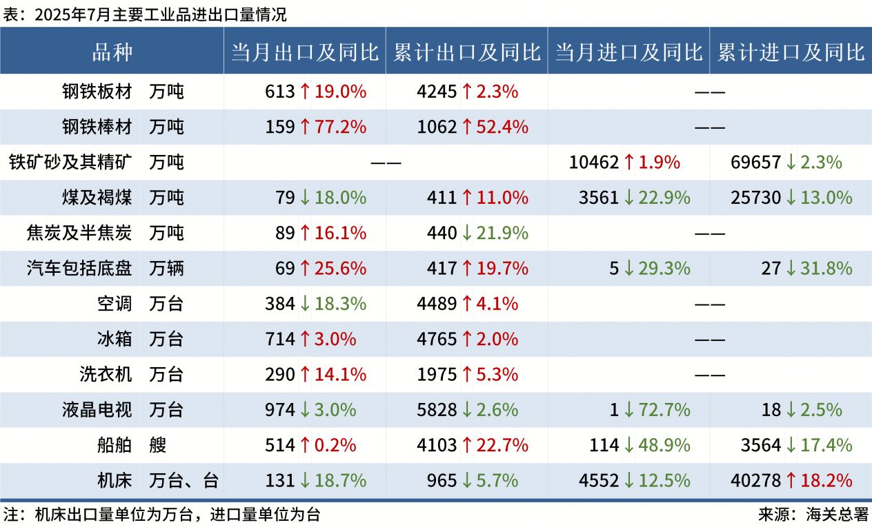 ◎ 海關(guān)總署數(shù)據(jù)顯示,2025年7月,中國出口鋼鐵棒材159萬噸,同比增長77.2%。具體如下: